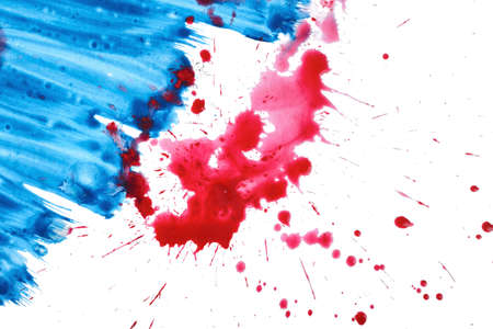 Ink drops on the paper, red, green and blue ink splashes background, painting and drawing