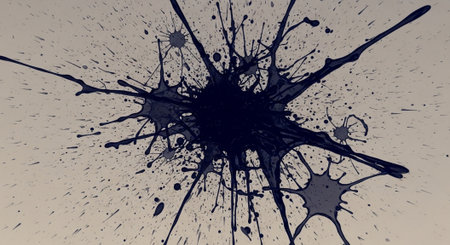 Textured ink splatter on paper, deep black organic patterns forming abstract artistic chaos.