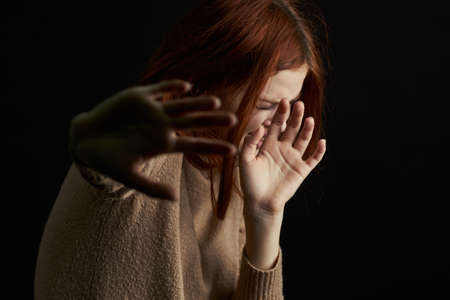 Young woman experiencing hallucinations after taking drugs. Substance abuse concept.