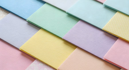Pastel paper texture with multiple squares arranged in pattern creating colorful mosaic. Abstract backgrounds with square of pastel texture arranged in rows. Gentle, soft colored art paper in pattern and creative paper arrangement AI Generative AI generated