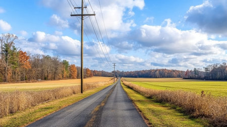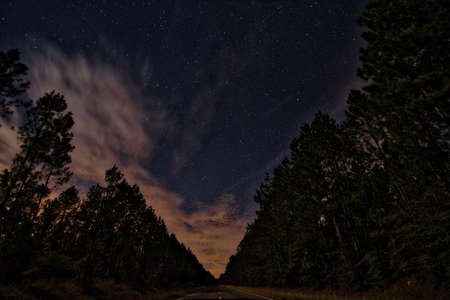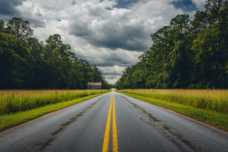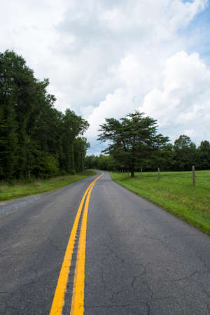 An empty road with tall pine trees near Kinsale, Virginia, U.S.A