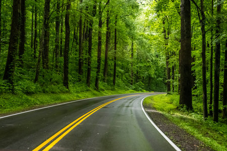 Road Winding Through the Smoky Mountains in Late November - Tennessee, USA