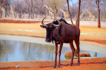 Wildlife wildebeast bull animal closeup moring photo park reserve
