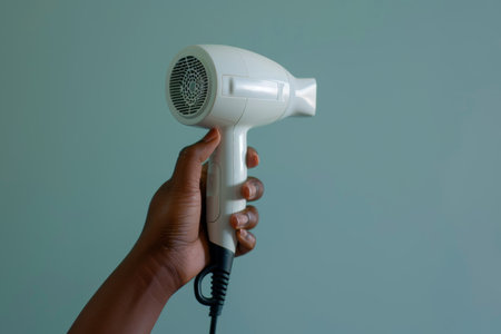 This stylish mint green hair dryer is perfect for personal grooming and beauty routines. Its modern design enhances any bathroom aesthetic.