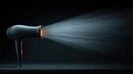 A sleek handheld hair dryer emitting steam, showcasing modern design and functionality. Ideal for beauty routines at home or in salons, blending efficiency with style.