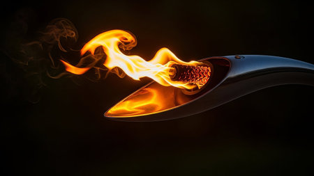 A close-up shot of a torch flame, showcasing the vibrant colors of the fire against a blurred background.