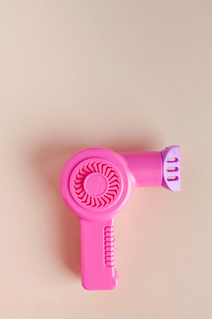 Children's toy hair dryer on a pink background. Concept of a barbershop, children's Barber shop, Barber's day Copy space. High quality photo