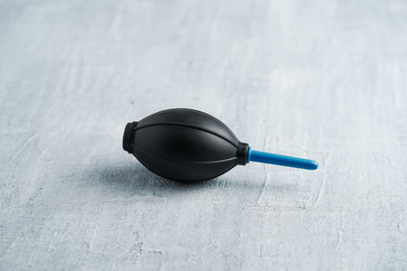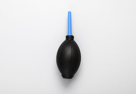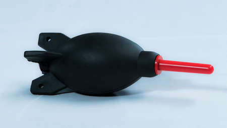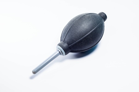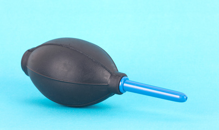 Enema for blowing dust from photographic equipment on gray background