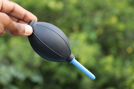 rubber blower clean camera close up