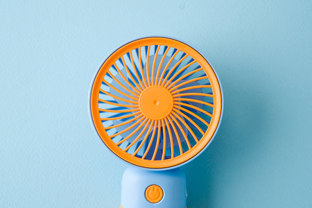 Portable mini hand fan isolated on blue background