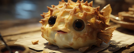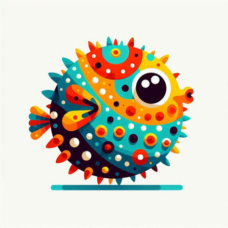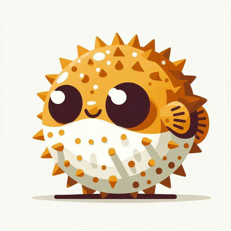 A cute and charming puffer fish, with its distinctive round shape and spiky appearance, generative ai illustration