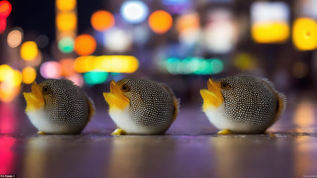 Toy puffer fish on the street at night in Bangkok, Thailand