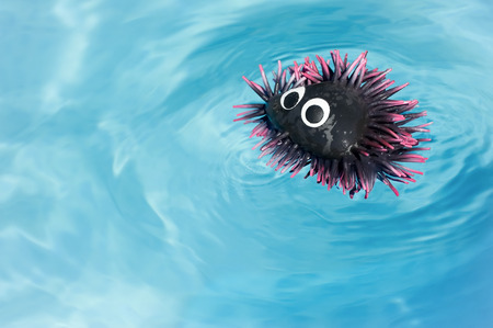 rubber sea urchin toy floating in water