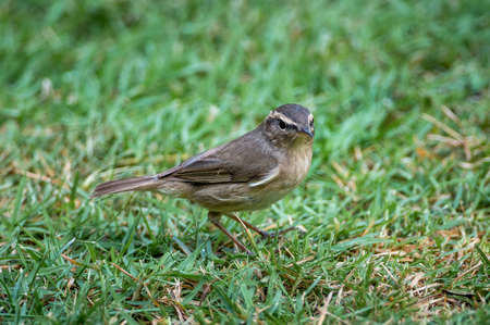 Dusky Warbler bird on the lawn