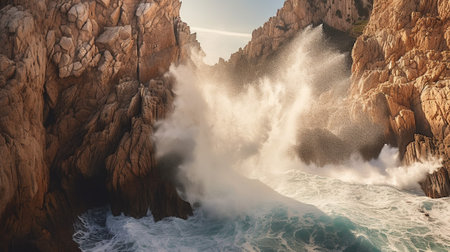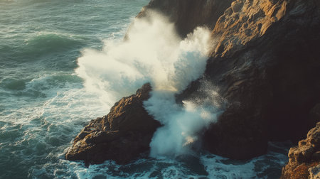 Feel the raw power of nature with waves crashing on rugged rocks. Experience the thrilling beauty of oceanic fury!