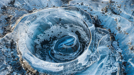 A watery spiral with shades of turquoise and white foam streaks. Generative AI