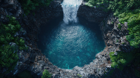 Experience the breathtaking power of nature with this stunning waterfall. The vibrant turquoise water creates a mesmerizing display of textures and patterns, perfect for travel and tourism projects. Capture the essence of adventure and the beauty of the natural world.