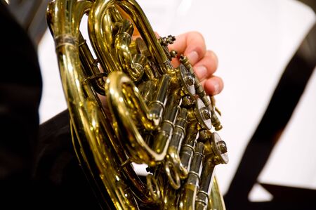 musician hands exploiting the trumpet
