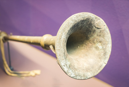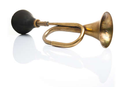 Horn klaxon metal instrument isolated over white background