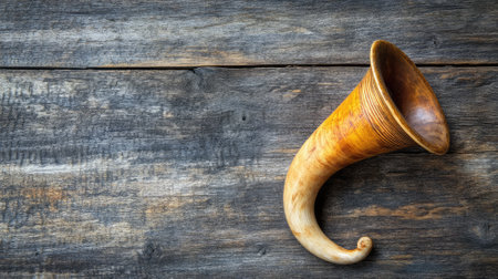 Symbolic Sound: Shofar, a traditional Jewish ram horn, isolated on a striking black background, evoking spiritual depth