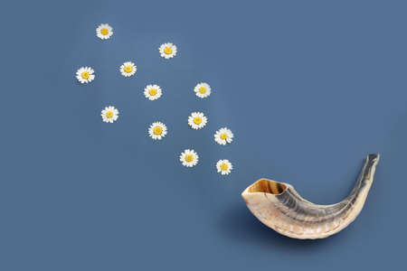 shofar (horn) over blue background. rosh hashanah (jewish holiday) concept . traditional holiday symbol.