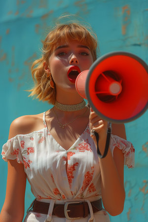 Caucasian young woman holding megaphone.