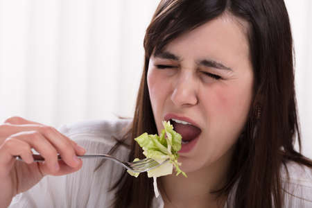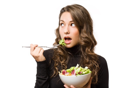 Beautiful healthy woman eating salad, Dieting Concept. Healthy Lifestyle.