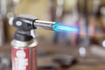 Glassblowing Work Place and Torch Pilot Flame, close up horizontal photo