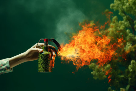 A close-up image of a hand holding a lighter, showcasing a vibrant flame against a dark, smoky background. The contrast of light and smoke creates a captivating mood.