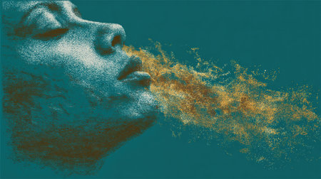 Close-up of mouth and nose with heavy breathing, steam visible in the cold air generative ai