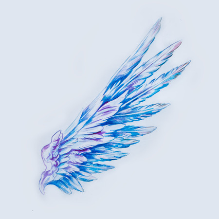 Sketch of a beautiful blue wing on a white background.