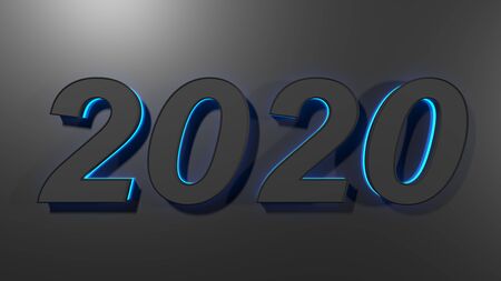 2020 black with blue backlight, on black glossy surface - 3D rendering illustration