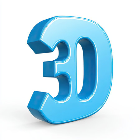 Blue 3D Number Thirty, Isolated, White Background, Digital