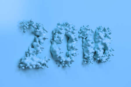 Blank new year 2019 figures on bright blue background in pastel colors. Minimalism concept. 3d render