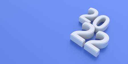 2022 new year, white large number against blue color background, copy space. Happy new year greeting card template, wish for luck, wealth, success. 3d illustration