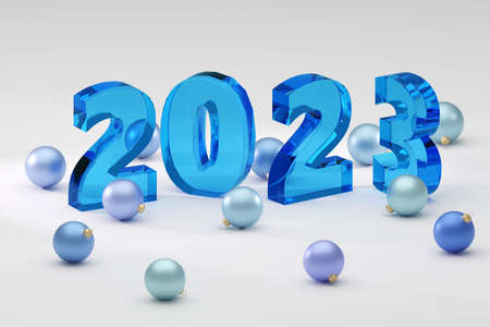 Soft blue glass style Christmas mood sign 2023 Modern Minimal New Year Concept- 3D render Illustration