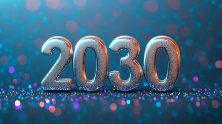 Glamorous Brushed Silver 2030 Shimmers on a Beautiful Bokeh Background for New Year s Celebration