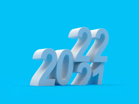 Silver numbers 2021 change to 2022 on a blue background. 3d illustration