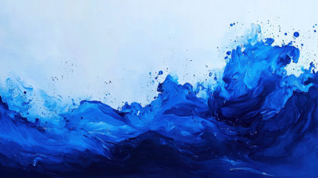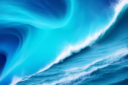 large wave breaking ocean blue sky unstirred paint deep element purely out symbolization, generative ai