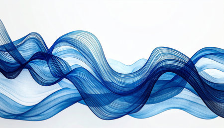 This image features flowing blue waves on a deep background, creating a serene and modern abstract design. Perfect for digital art projects and creative themes.