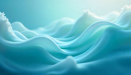 Abstract digital art depicting serene aqua waves. Smooth, flowing textures create a calm and peaceful atmosphere.