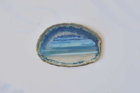 Abstract background, blue longitudinal agate slice mineral isolated on white