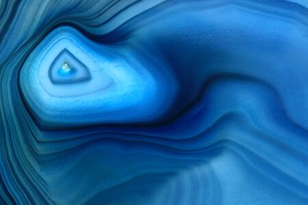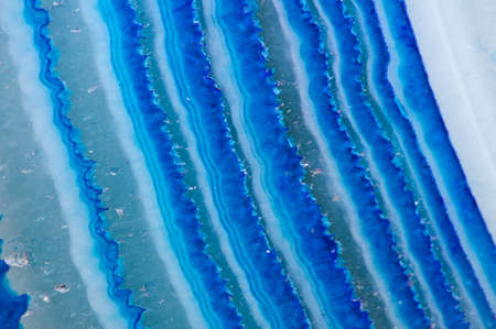 Close up of bright blue agate texture. Natural mineral background with wavy lines