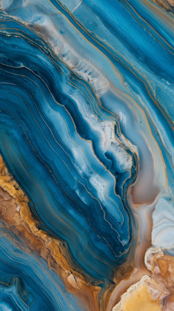 A captivating close-up image featuring blue agate stone with shimmering gold accents and crystal inclusions, showcasing intricate natural beauty and vibrant hues.