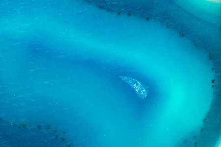 Background from handmade epoxy resin product close-up in the form of a blue sea with waves.