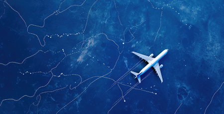 Digital airplane flying in a wide blue sky, creating a concept related to travel and tourism