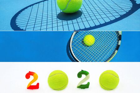 Creative collage inspired by tennis sport in New Year.