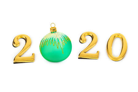 Numbers 2020 and christmas toy isolated on white background
