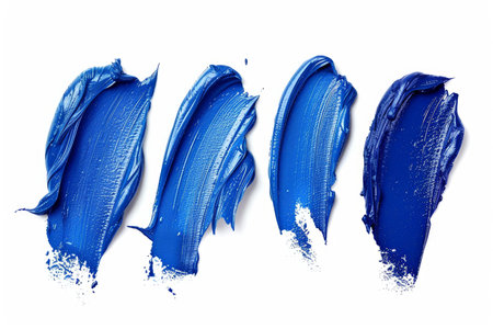 Abstract image of blue acrylic paint swipes isolated on a white surface