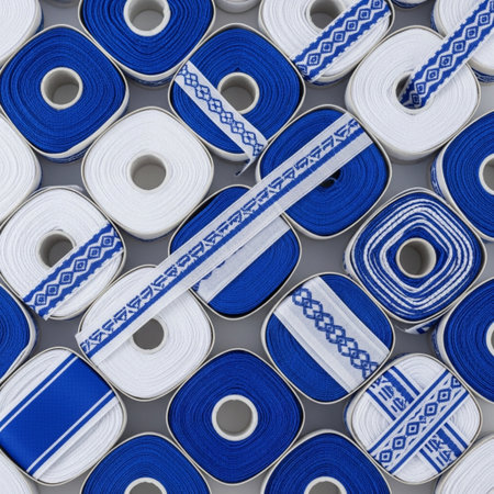 Close-up image of a roll of blue spools of thread
